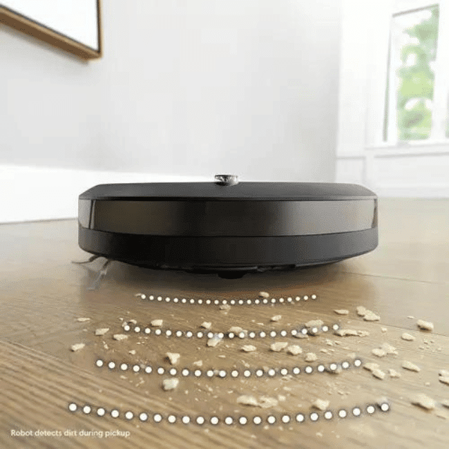 The iRobot Roomba i4 automatically adjusts its height and suction power depending on the surface, allowing it to move easily between carpet and bare floors.